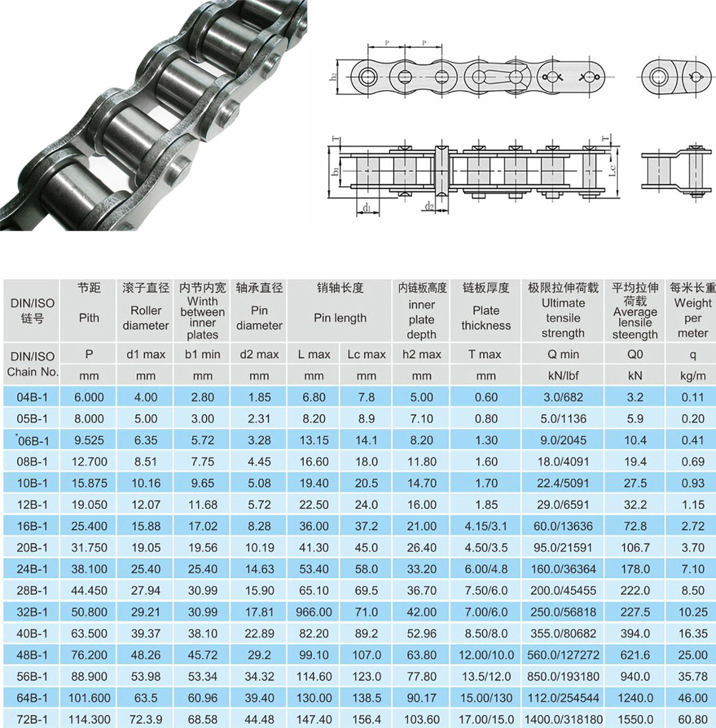 Precizni valjkasti lanci s kratkim korakom (serija B)