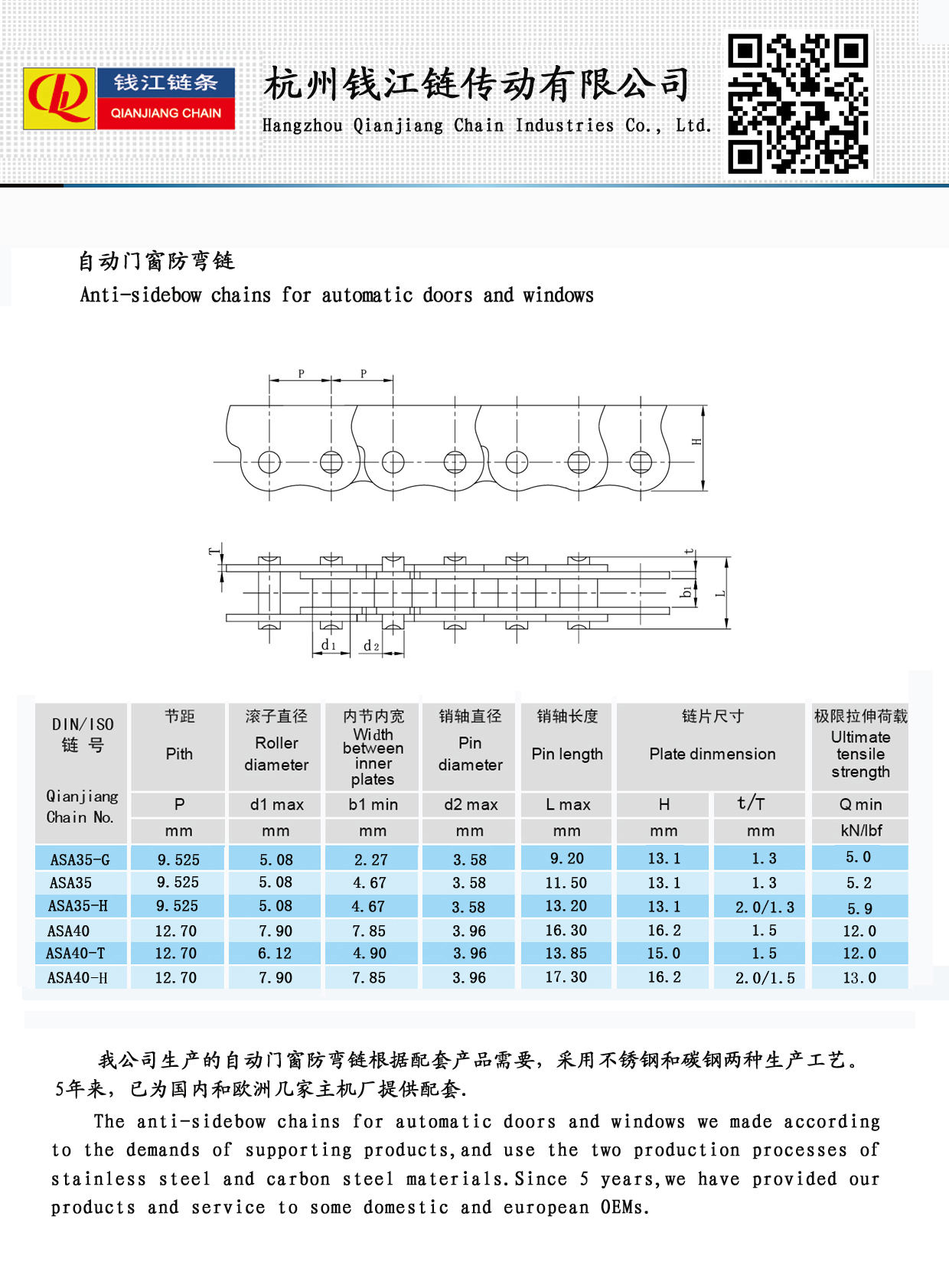 Fina izrada Anti-bočni lanci otporni na starenje za automatska vrata i prozore – rješenje za gladak, pouzdan rad automatskih vrata i prozora. Dizajnirani s preciznošću i napravljeni da traju, ovi lanci izrađeni su korištenjem naprednih materijala koji osiguravaju iznimnu izdržljivost i otpornost na trošenje, čak i u teškim uvjetima. Bilo da se radi o temperaturama, vlazi ili stalnoj uporabi, naši anti-sidebow lanci održavaju svoj oblik i snagu, eliminirajući neželjeno bočno pomicanje (bočno) za besprijekornu izvedbu.