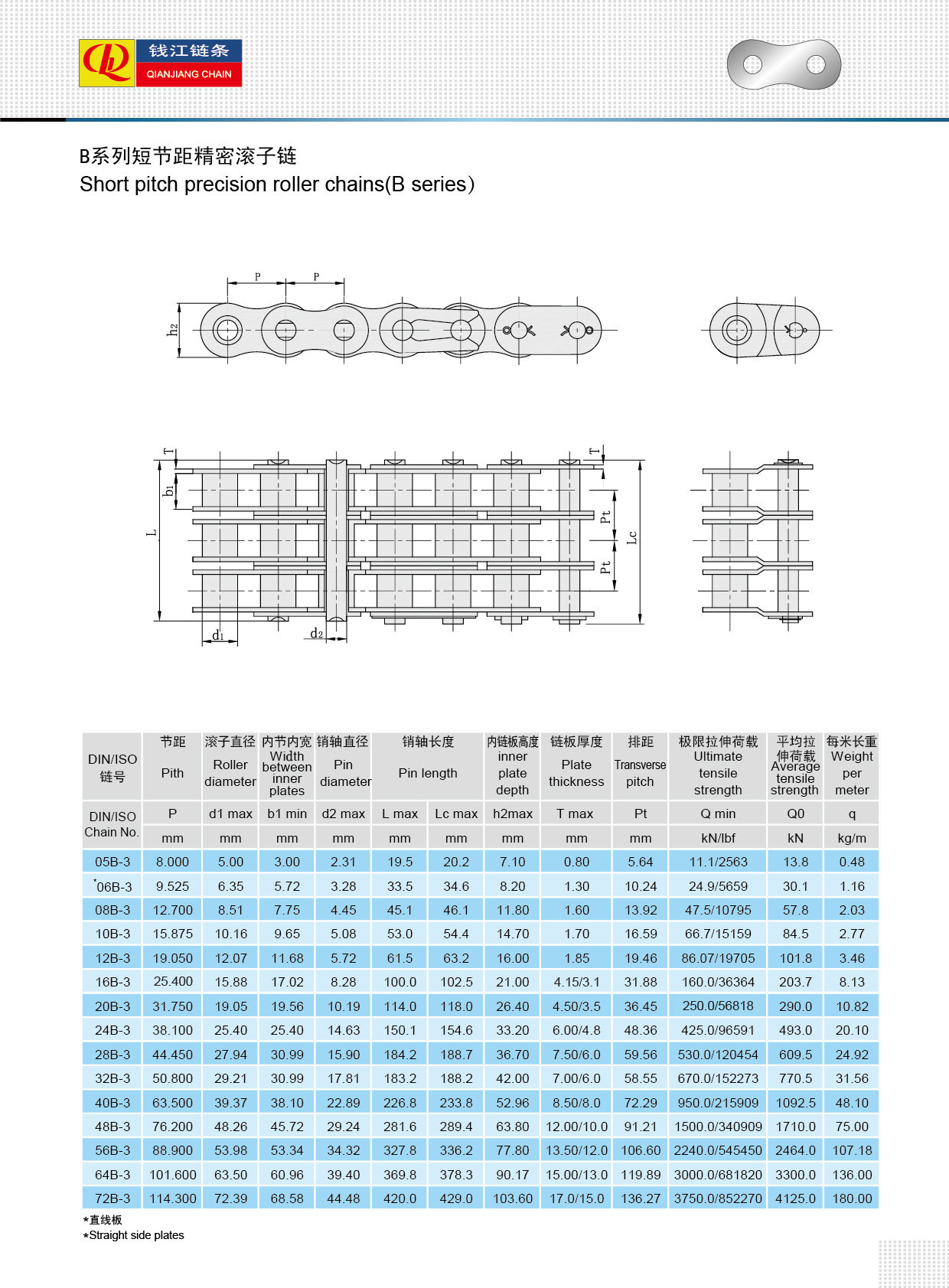 Precizni valjkasti lanci s kratkim korakom (serija B)
