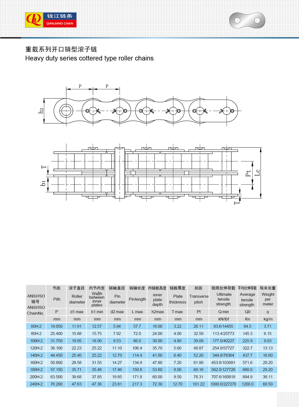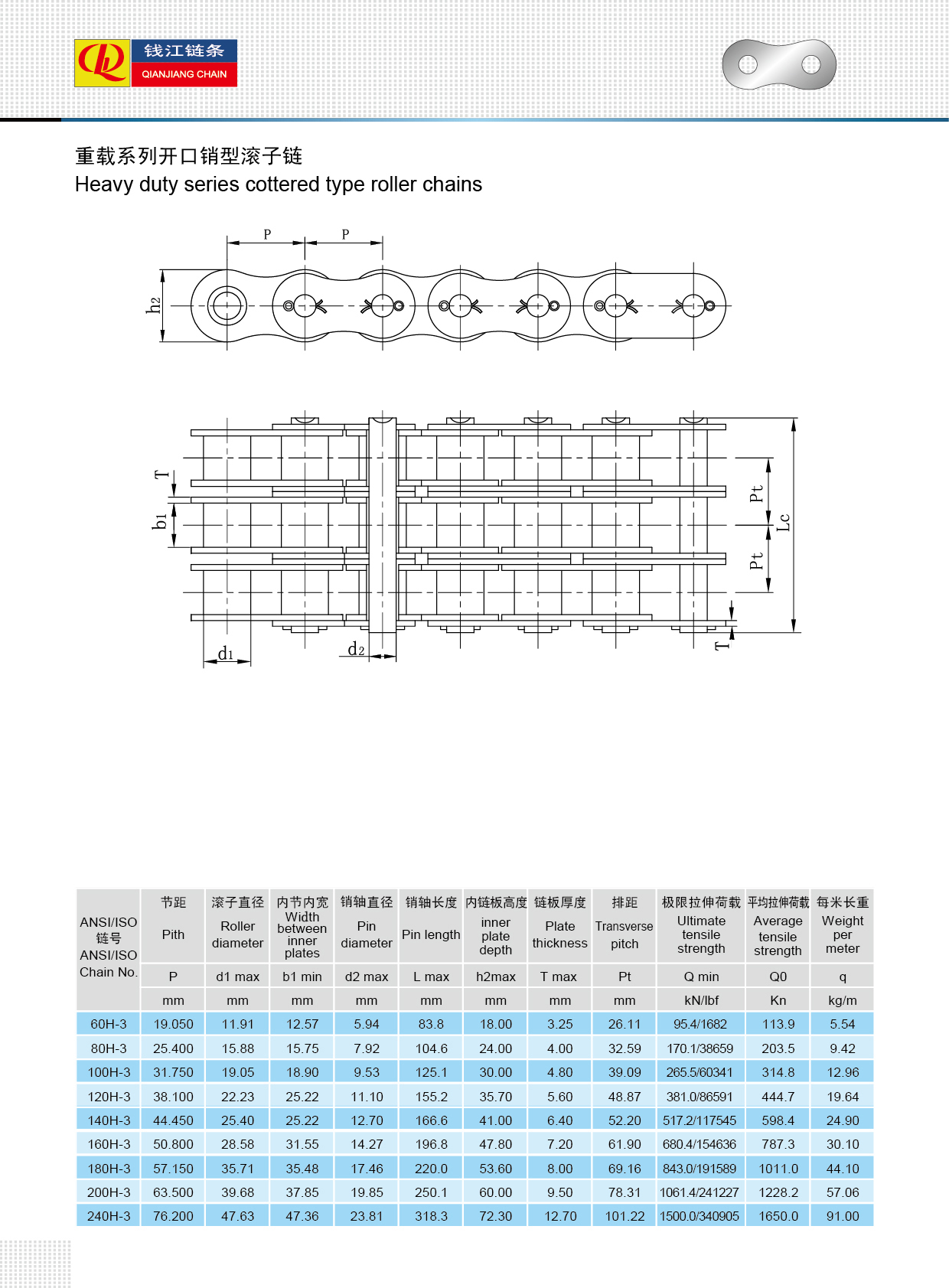 Lanci s kotrljajućim lancima serije Heavy Duty Series dizajnirani su za zahtjevne primjene gdje su pouzdanost i izdržljivost ključni. Dizajnirani sa sustavom klinova s klinovima, ovi lanci nude snagu i performanse u usporedbi s tradicionalnim valjkastim lancima, što ih čini idealnim za teške strojeve, transportne trake i industrijsku opremu. Tip s utorima osigurava da je svaki klin sigurno pričvršćen, smanjujući rizik od labavljenja i osiguravajući dosljedan rad tijekom vremena.